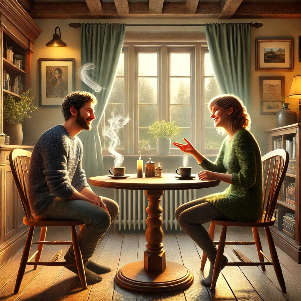Le silence fut brisé par le bruit d’une cuillère remuant doucement. Léa sourit timidement. Hugo posa la tasse, s’adossa au canapé et, d’un ton léger, commença à parler d’un match de foot qu’il avait vu la veille. Léa répondit, hésitante, mais bientôt leur conversation reprit sa fluidité habituelle, comme un ruisseau qui retrouve son cours.