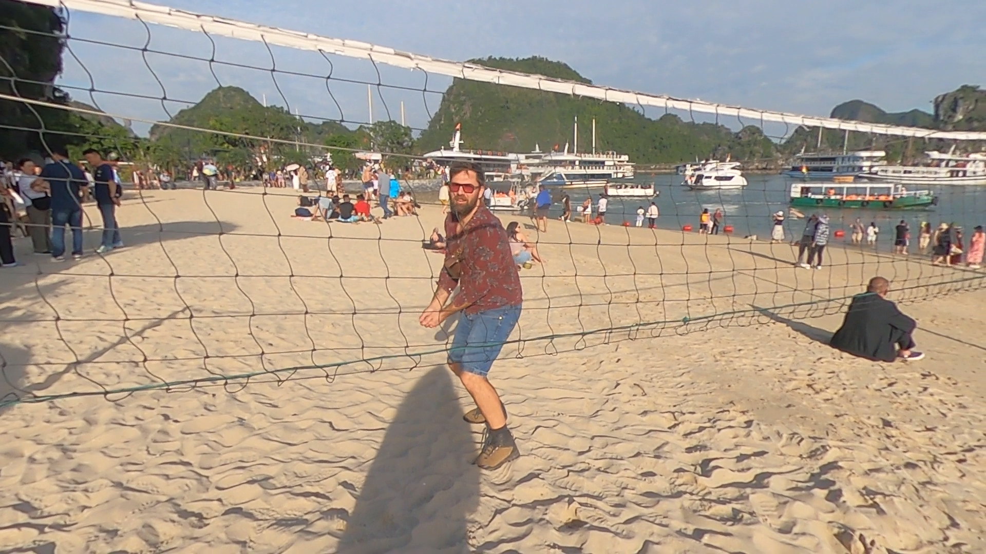 Depuis le sommet de Titop : une vue à couper le souffle sur la baie.En redescendant, on découvre la plage… blindée de monde. Difficulté pour trouver un coin tranquille, mais l’ambiance est bonne. On finit par en rire : musculation improvisée sur un appareil posé sur le sable, course sur la plage, jeux, moments de complicité. Même dans le chaos, on parvient à créer nos propres instants de bonheur.