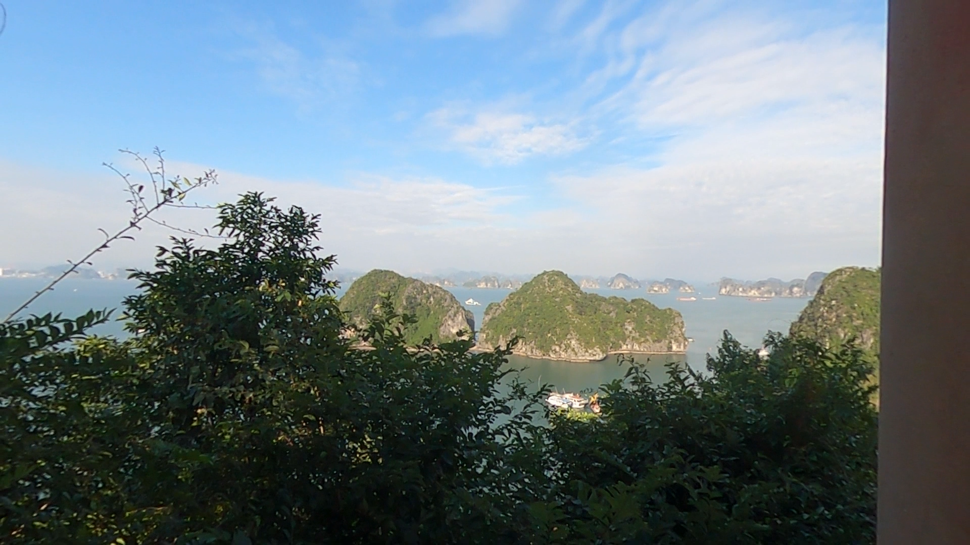 On grimpe en slalomant entre les gens, en doublant des groupes, en essayant de garder le rythme. La montée devient presque une épreuve sportive. Mais une fois au sommet, la récompense est à la hauteur : une vue panoramique spectaculaire sur la baie d’Halong, les bateaux en contrebas et les falaises à perte de vue.