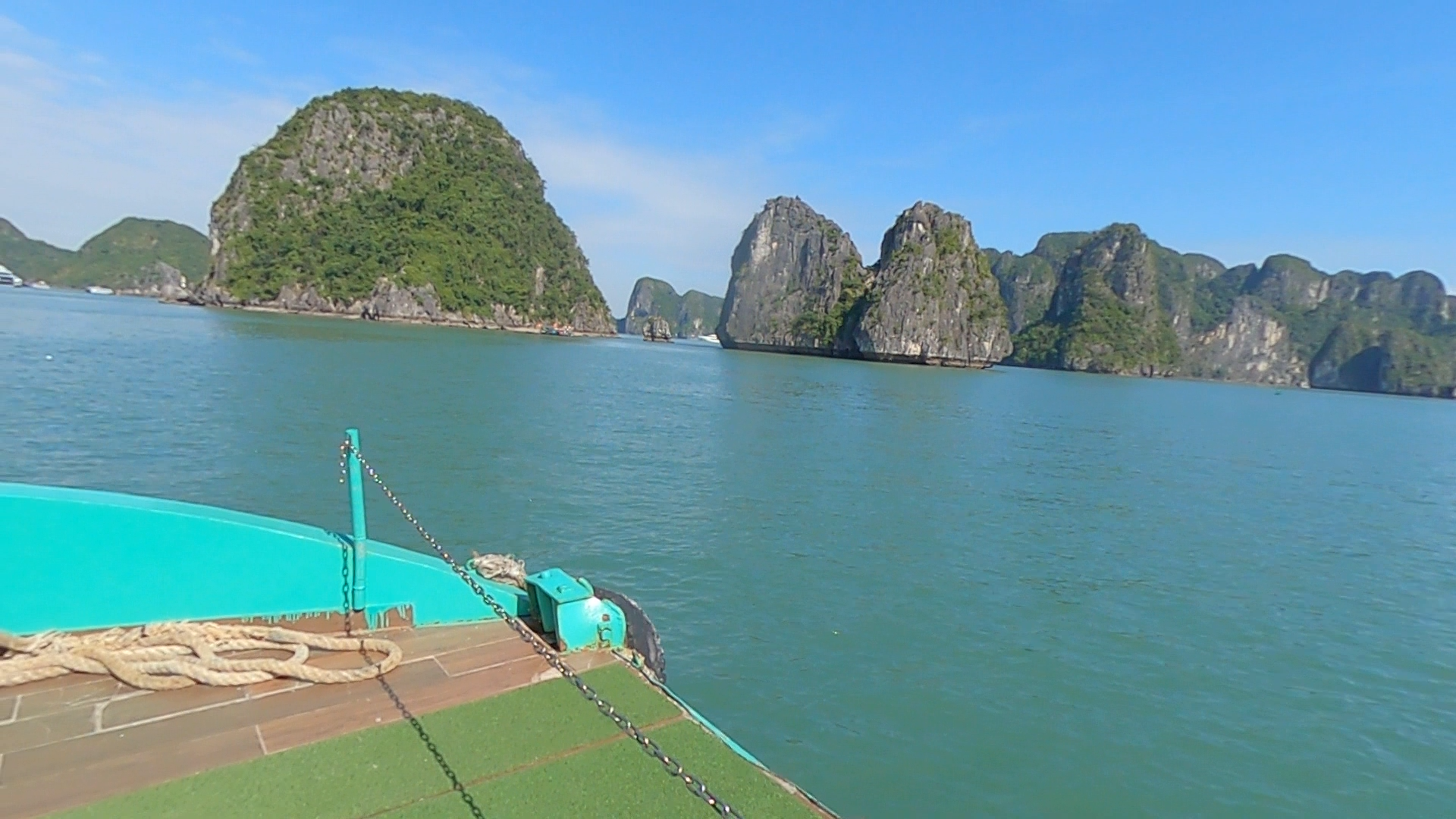 Les falaises karstiques de la baie d’Halong, vues depuis le pont du bateau.La grotte Sửng Sốt : entre émerveillement et tourisme de masse