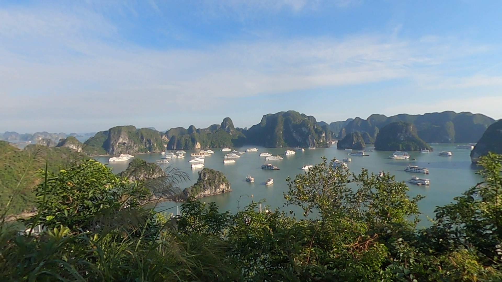 On grimpe en slalomant entre les gens, en doublant des groupes, en essayant de garder le rythme. La montée devient presque une épreuve sportive. Mais une fois au sommet, la récompense est à la hauteur : une vue panoramique spectaculaire sur la baie d’Halong, les bateaux en contrebas et les falaises à perte de vue.